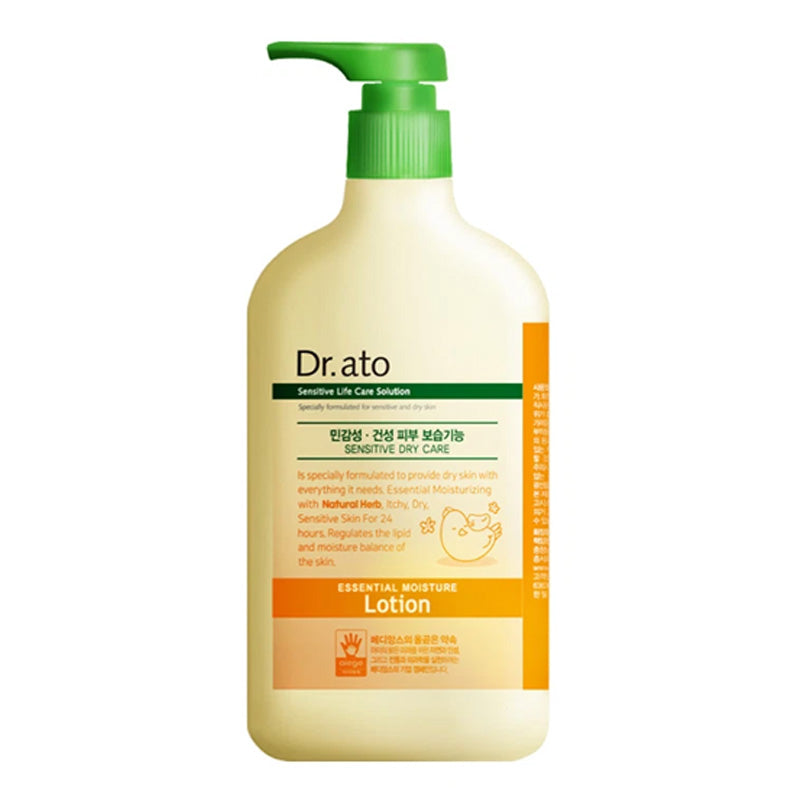 Dr. Ato Essential Moisture Lotion is specially formulated for sensitive and dry skin, providing deep hydration and relief from itching. Its gentle formula, enriched with natural herbs, helps maintain the skin's moisture balance for up to 24 hours. Ideal for daily use on all skin types, including babies and adults.